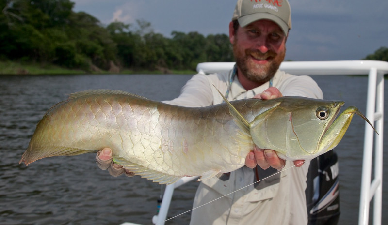 No hay otro lugar donde puedas atrapar tantas arowanas con fly. Estos maravillosos peces también son omnívoros y comen casi cualquier insecto o pez cebo que se les presente. ¡Son una delicia para la pesca visual!