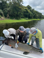 At 82 years old, Michael reminded everyone that passion for adventure has no age. On his very first day of fishing, he achieved a jungle grand slam—landing arapaima, tambaqui, and arowana. His determination, energy, and joy on the water inspired everyone at the lodge. A powerful reminder that the Amazon rewards those who approach it with heart and spirit.