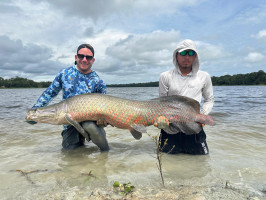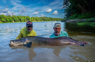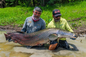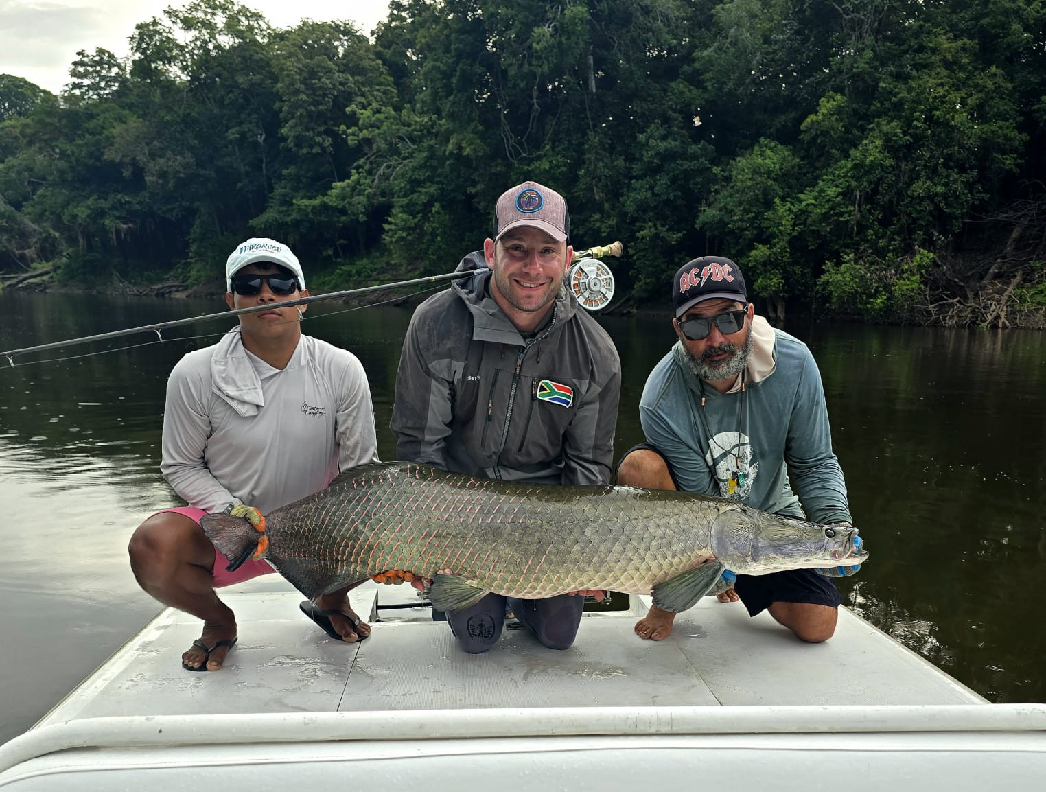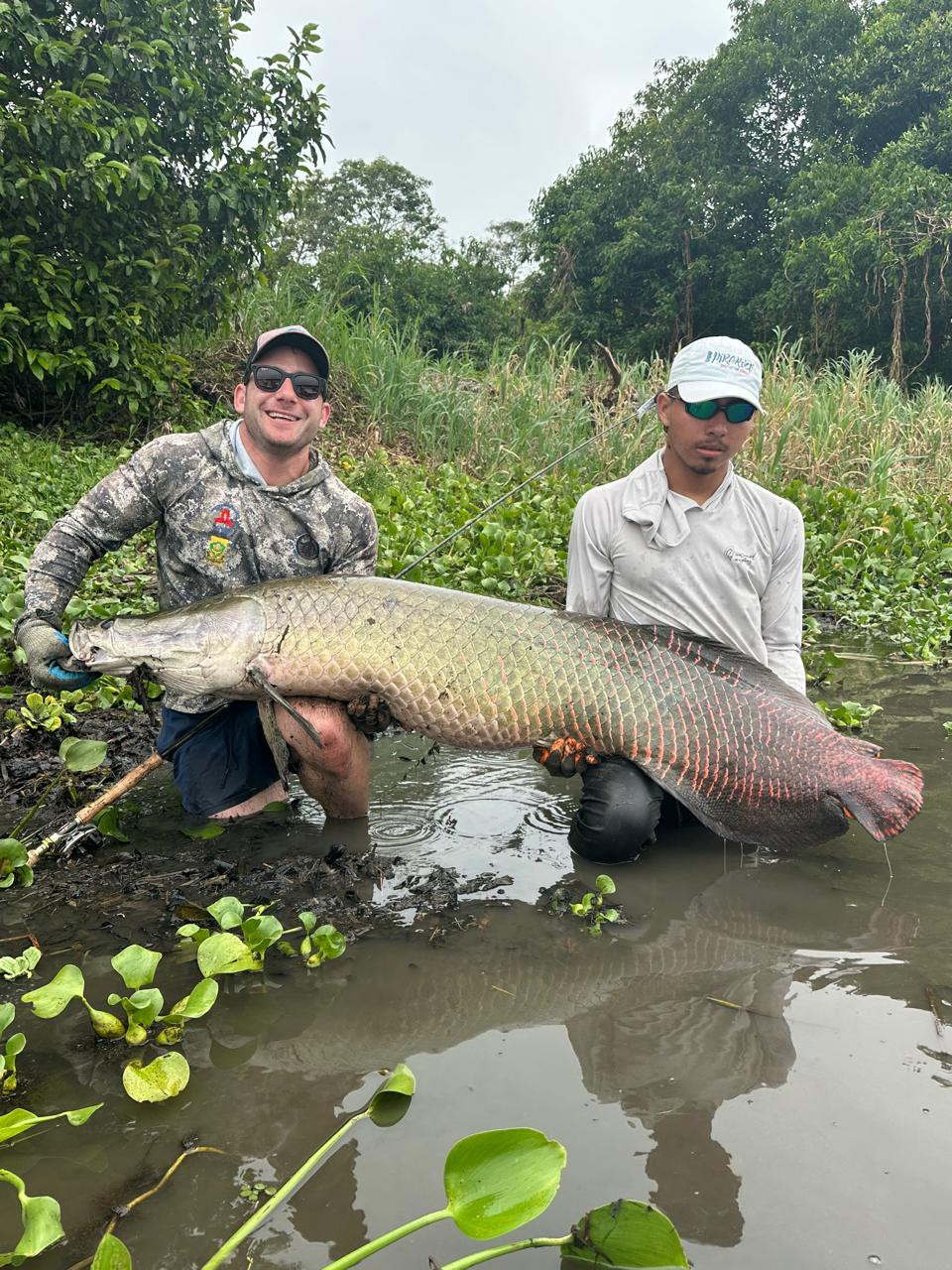 El agua y el clima se alinearon, brindando pesca visual limpia y verdadera acción en superficie. Los arapaimas se movieron con intención, explotando en la superficie y dejando estelas en las lagunas.