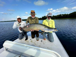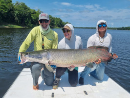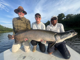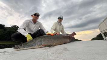 El momento definitorio llegó con la captura de una colosal arapaima de 230 cm — un encuentro que exigió fuerza, precisión y paciencia en igual medida. Otra historia notable ocurrió al principio del período, cuando un par de pescadores visitantes lograron un “jungle slam” raro, capturando arapaima, tambaqui y arowana en un solo día.