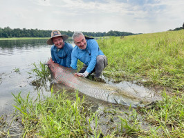 Bajo la dirección de Rafael Costa, con 10 años de experiencia en Pirarucu Lodge, la semana fue un sueño para los pescadores. Los esfuerzos de conservación de Untamed Angling han transformado la Reserva Mamirauá en un santuario para la pesca de arapaimas. Los pescadores enfrentaron ataques feroces y saltos espectaculares de estos legendarios gigantes amazónicos, un verdadero desafío de habilidad y resistencia. Además, la presencia de delfines rosados, caimanes y aves vibrantes enriqueció aún más la experiencia.