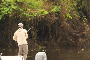La apertura de la temporada 2025 en el Lodge Pirarucú fue un vívido recordatorio del ritmo indomable del Amazonas. Las aguas altas establecieron un escenario exigente, donde rastrear peces activos requería instinto agudo por parte de nuestros guías y una lectura precisa del río. Cada lanzamiento cargaba con peso y expectativa, y quedó claro que las recompensas eran solo para quienes estaban dispuestos a adaptarse y persistir.