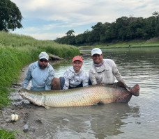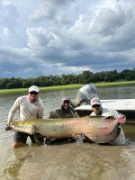 El mayor momento destacado de la semana fue, sin duda, la captura del arapaima de 237 cm. La lucha duró más de una hora, y cada salto fue recibido con suspiros de asombro. La emoción del grupo era palpable mientras trabajaban juntos para desembarcar el pez, que se convirtió en el centro de una historia que seguramente se convertirá en legendaria entre los pescadores de Pirarucu.