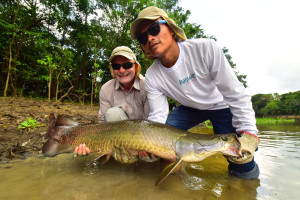 The photographers and filmmakers from the Fly Fishing Nation came to Pirarucu and took some very good shots of big arapaima! Paulo caught a couple of arapaima, measuring 1,65 m and 1,54 m!
