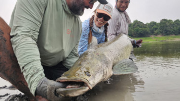 Week 2 brought an intimate group of 4 dedicated anglers, on a combo trip with the Rio Marié, and they didn’t hold back. The water might have been low, but the fishing was on fire. Our sharp-eyed guest Rachel put on a clinic, landing an absolute beast at 1.74 meters—what a catch! Congrats on that trophy fish, Rachel, a job well done.