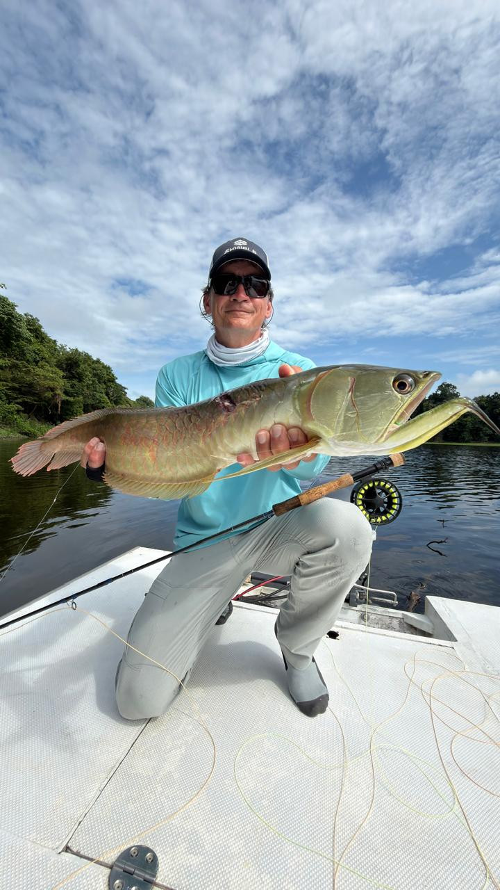 Now halfway through the morning session with a great arawana in the photos, we switched back to arapaima until lunch. Back to the slow strip and watch, the patient rhythm, the waiting. The contrast between the two couldn't be sharper—one fish demands constant attention and quick reflexes, the other teaches you that sometimes the hardest part of fishing is doing nothing at all.