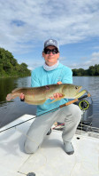 I caught arawana of all sizes through the morning. Then on the last cast before moving on, I hooked the one. The fish was near a tree that had fallen into the river, and he knew exactly where to go. Line stripped from the reel as he headed straight for the tangle of branches. We maneuvered the boat, trying to clear the fish from the tree, but he was faster. The giant wrapped the line several times around a branch near the surface. We moved quickly into position, freed the tangled line, and brought the great fish to hand. A trophy specimen, the kind you travel for.