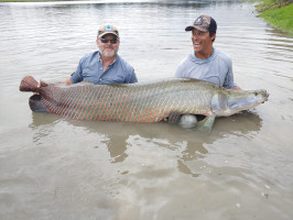 The water level is finally going up, and the fish are very hungry. This week we landed a beast, 2 meters and 30 cm - an absolutely huge fish! We also saw a few smaller fish, and our Canadian friend Douglas put the work in to land three fish over 6 feet long!