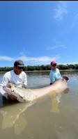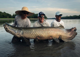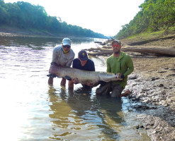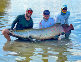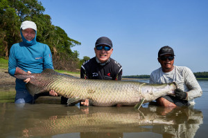 We had a great week with incredibly low water levels and lots of big fish. Our highlight was Milton’s 229 cm. monster arapaima! Our good friend Aldo landed some beasts as well. With great numbers of pacu around, it can be tempting to fish for them, but most of our anglers were on the hunt for giant arapaima. They were all over the place, so it was hard to resist!